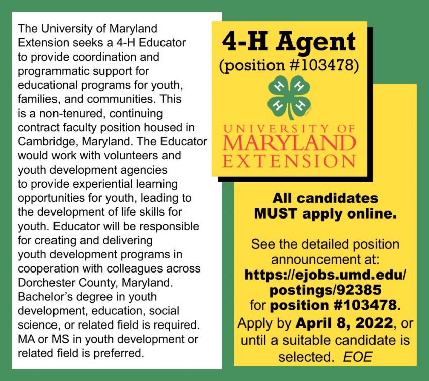 Apr 01, 2022. University Of Maryland Extension Education Jobs from Eastern Shore Careers