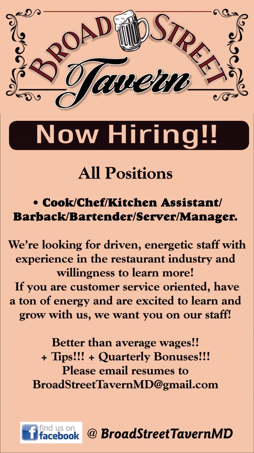 Apr 14, 2022. Broad Street Tavern Cooks & Chefs Jobs from Eastern Shore Careers
