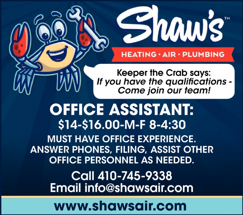Jul 31, 2022. Shaw's Heating, Air & Plumbing Administration Jobs from Eastern Shore Careers