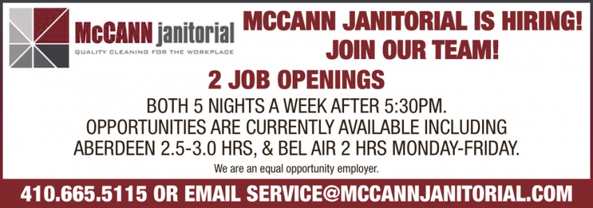 Aug 16, 2023. McCann Janitorial Cleaning Jobs from Eastern Shore Careers