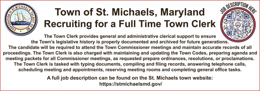 Town Clerk Job Opportunity in Saint Michaels, MD