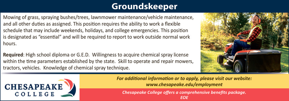 Dec 18, 2025. Chesapeake College Groundskeeper Jobs from Eastern Shore Careers