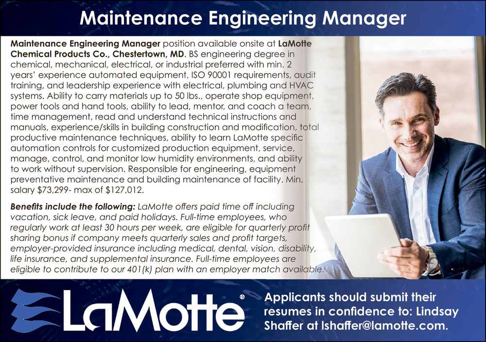 Jan 24, 2026. La Motte Maintenance Engineer Manager Jobs from Eastern Shore Careers