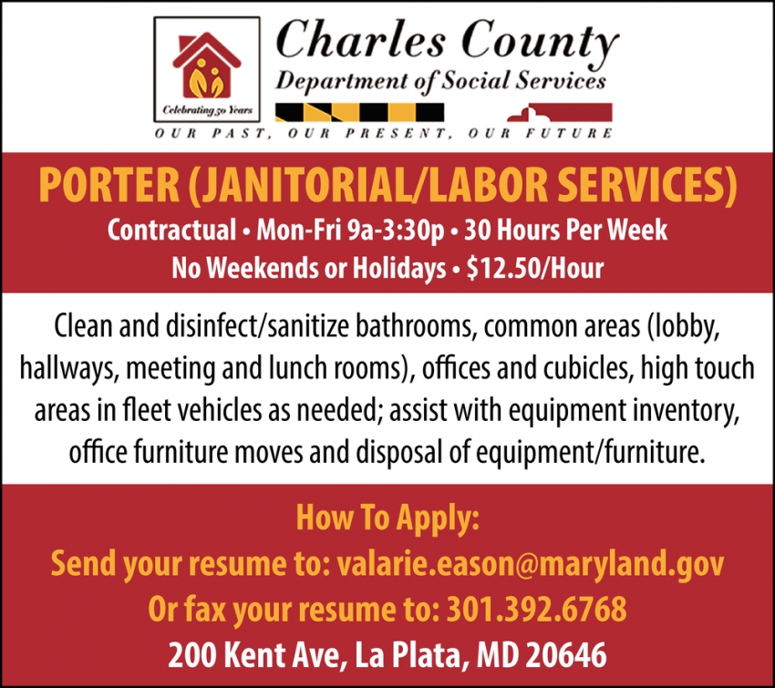 Aug 08, 2021. Charles County Department Of Social Services Cleaning Jobs from Eastern Shore Careers